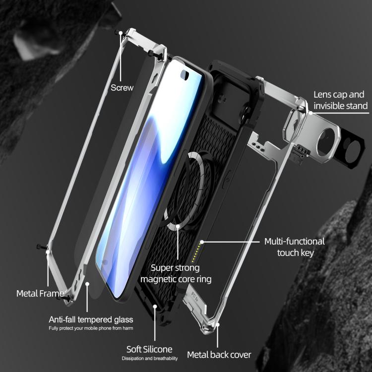 Funda de metal con soporte para lente de iPhone Air, resistente al agua IP54, triple protección MagSafe (plateada)