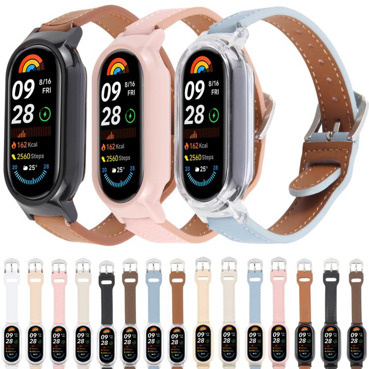 Funda de PC para Xiaomi Smart Band 9 con correa de cuero de microfibra integrada (rosa)