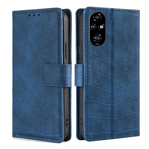 Funda de Piel con Cierre Magnético y Diseño de Cocodrilo para Honor 200 Pro 5G (Azul)