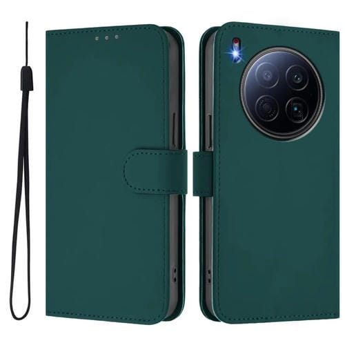 Funda de piel con cordón para Tecno Camon 40 Premier Skin Feel (verde oscuro)