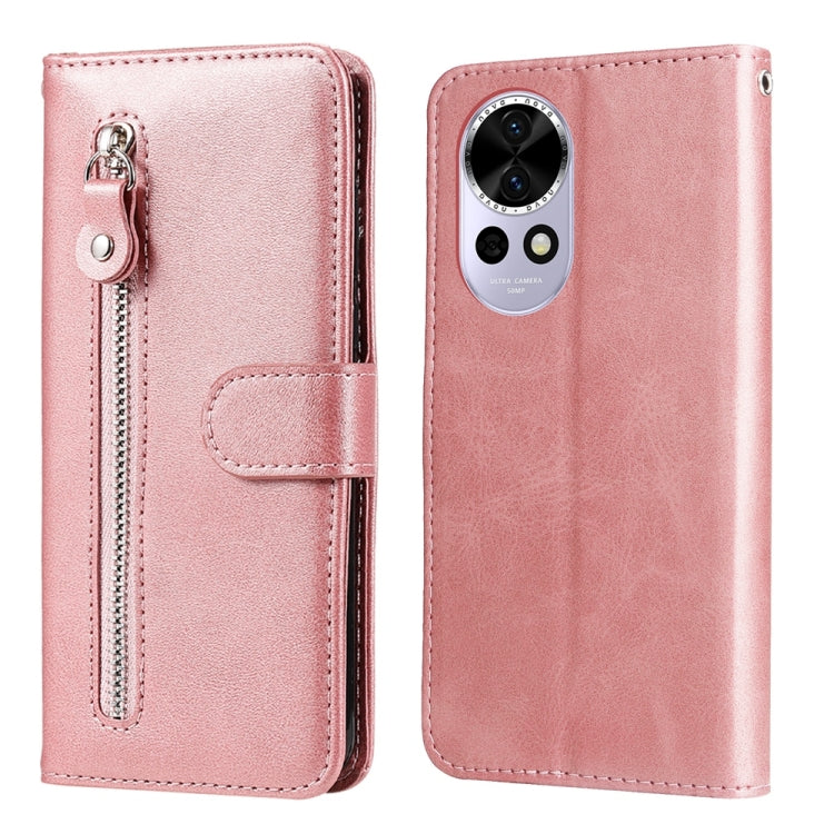 Funda de Piel con Cremallera y Textura de Becerro para Huawei Nova 13 Pro (Oro Rosa)