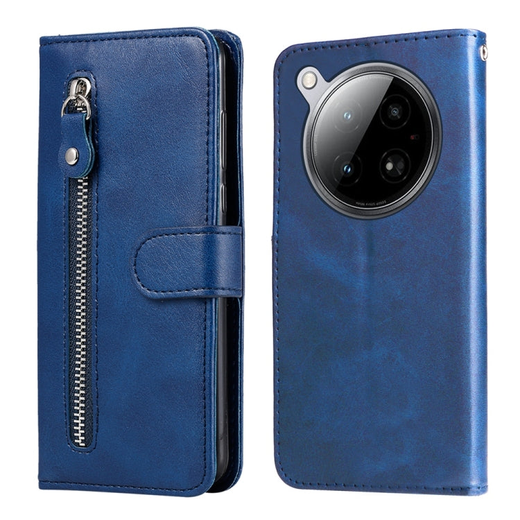 Funda de Piel con Cremallera y Textura de Becerro para Infinix Zero 40 4G/5G (Azul)
