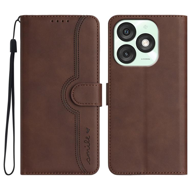 Funda de Piel para Teléfono Itel A50 con Diseño de Corazón (Marrón)