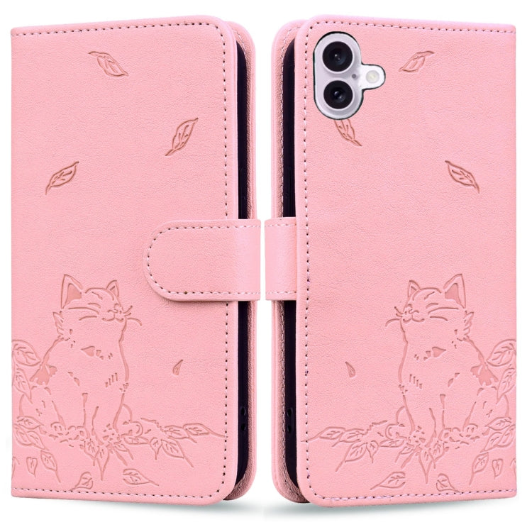 Funda de Piel para iPhone 16 Estampado de Gato (Rosa)