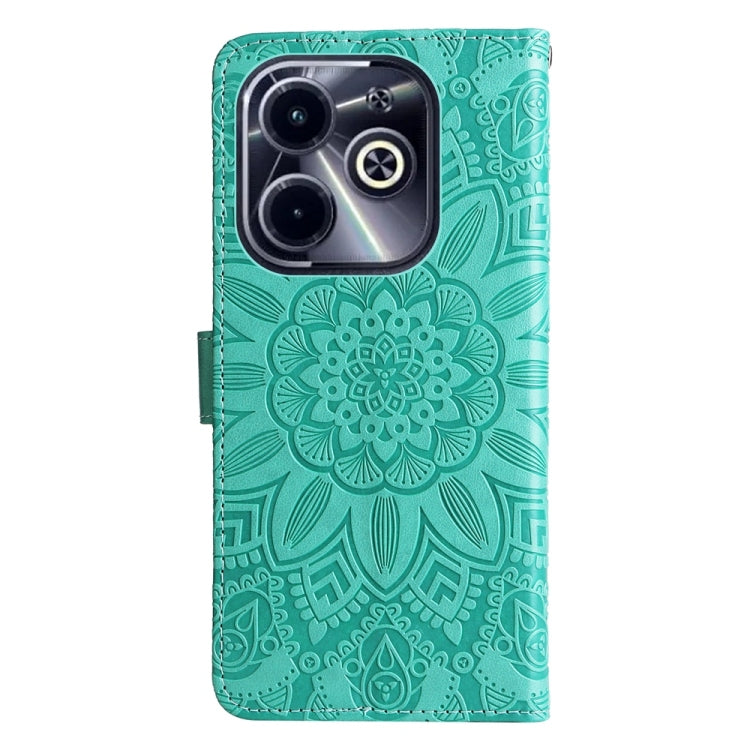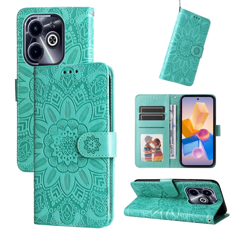 Funda de Piel para Infinix Hot 40I con Estampado de Girasoles en Relieve (Verde)