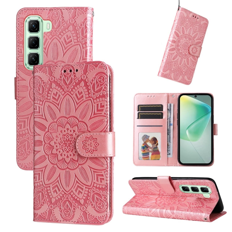 Funda de Piel con Estampado de Girasoles en Relieve para Infinix Hot 50 5G (Rosa)