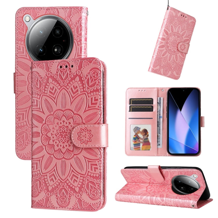 Funda de Piel con Estampado de Girasoles en Relieve para Infinix Zero 40 4G/5G (Rosa)