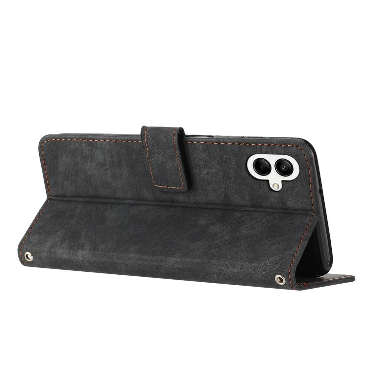 Funda de piel con estampado de rayas y cordón para Samsung Galaxy A07 4G (negra)