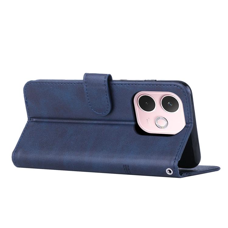 Funda de Piel con Hebilla y Textura de Becerro con Costuras Globales para Oppo A5 Pro 5G (Azul)