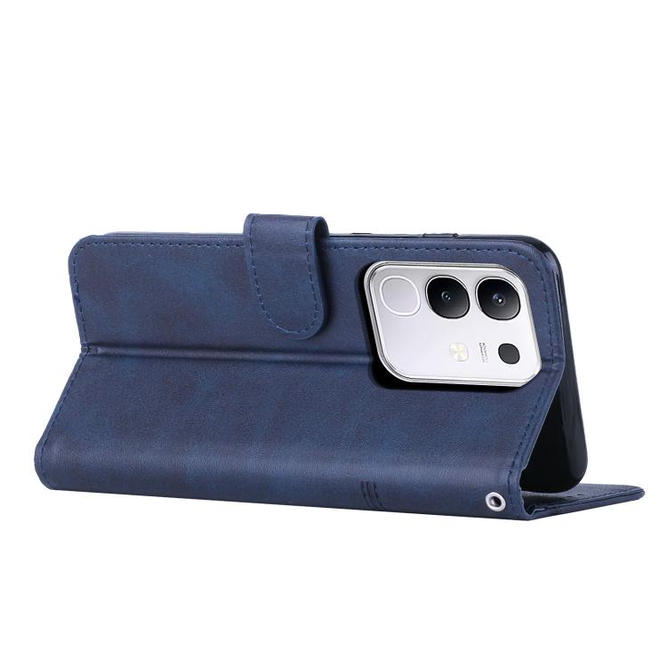 Funda de Piel con Hebilla y Textura de Becerro para Vivo Y29 4G (Azul)