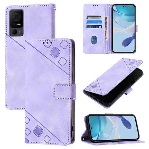 Funda de Piel con Relieve para Teléfono TCL 40 XL/40 T T608Dl (Morado Claro)