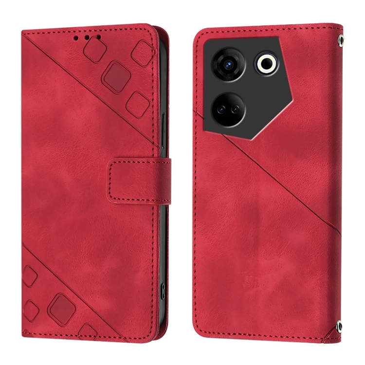 Funda de Piel con Relieve para Teléfono Tecno Camon 20/20 Pro 4G (Roja)