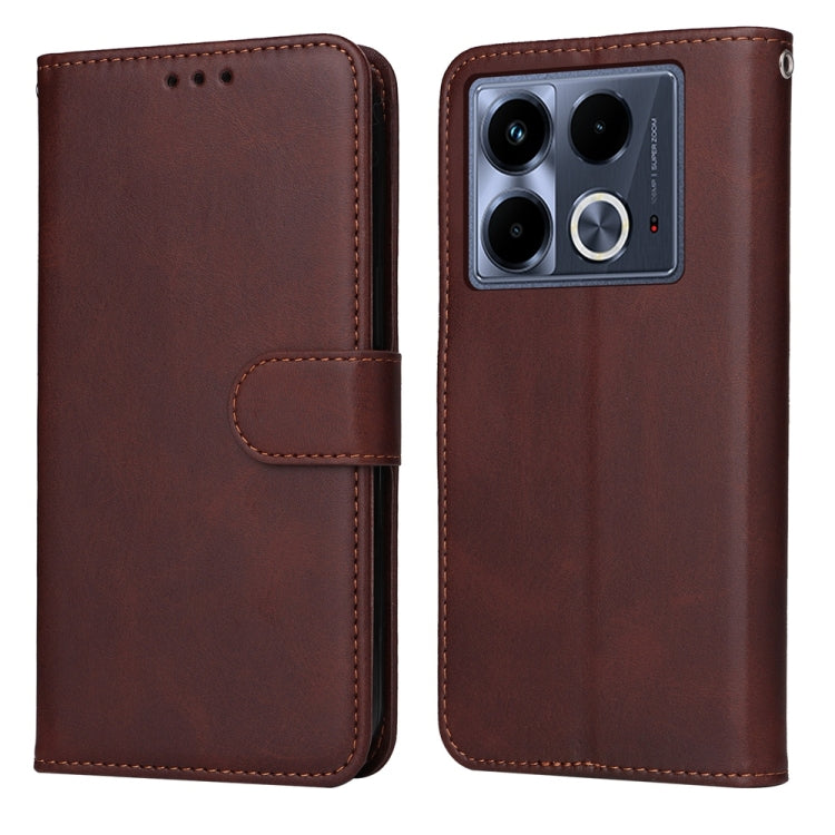 Funda de Piel con Tapa Textura Clásica Becerro para Infinix Note 40 4G (Marrón)