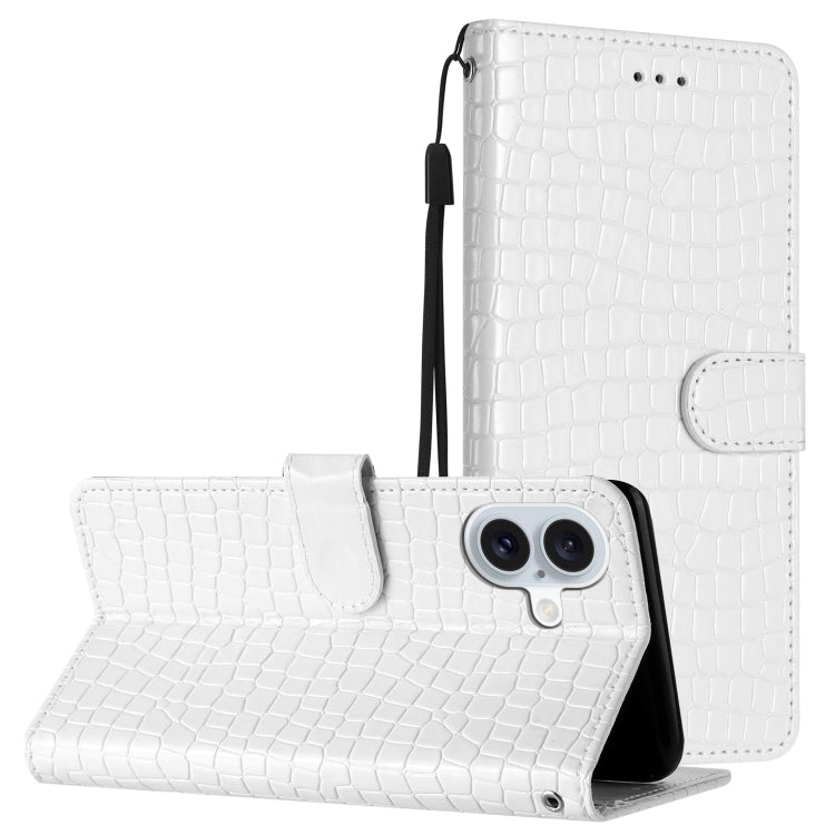 Funda de Piel con Tapa Horizontal Textura de Cocodrilo para iPhone 16 (Blanca)