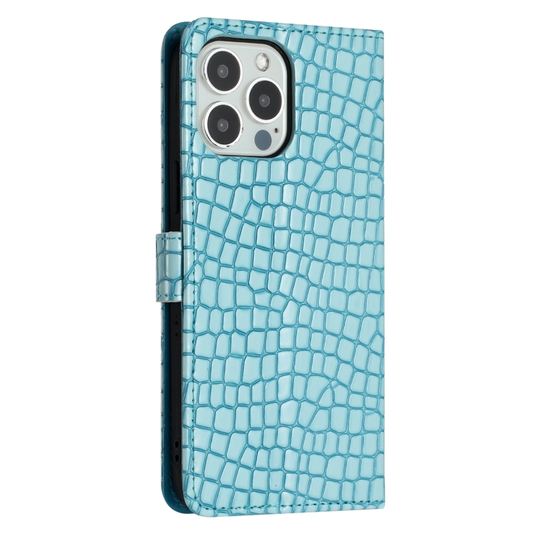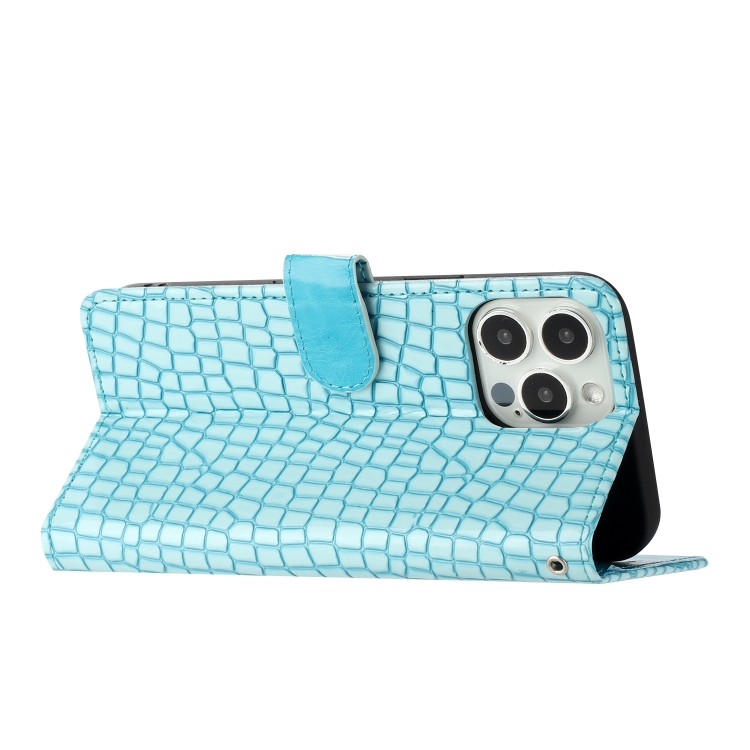 Funda de Piel con Tapa Horizontal Textura Cocodrilo para iPhone 16 Pro Max (Azul Claro)