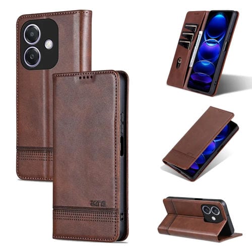 Funda de Piel con Tapa Magnética Azns para Oppo A3X 4G (Marrón Oscuro)