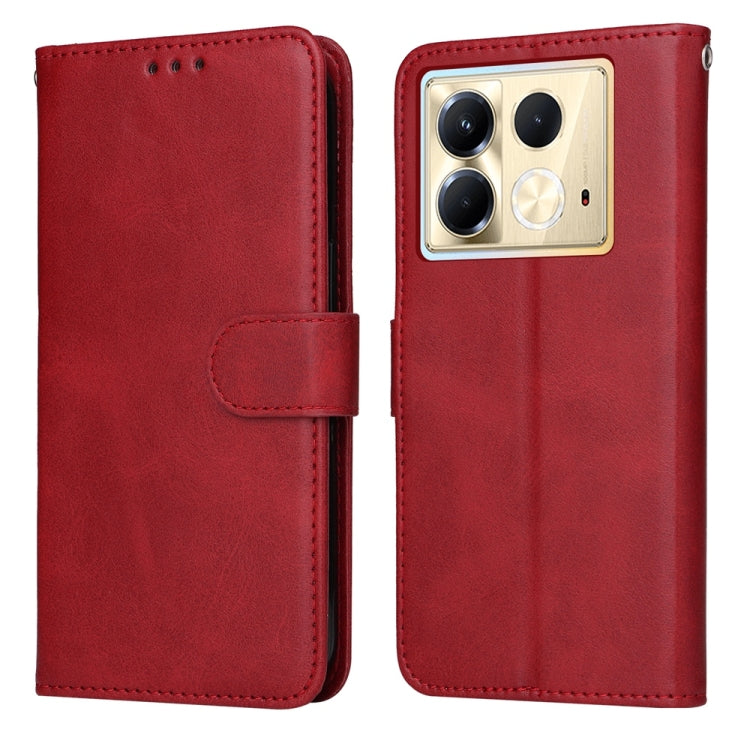 Funda de Piel con Tapa y Textura Clásica Becerro para Infinix Note 40 5G (Rojo)
