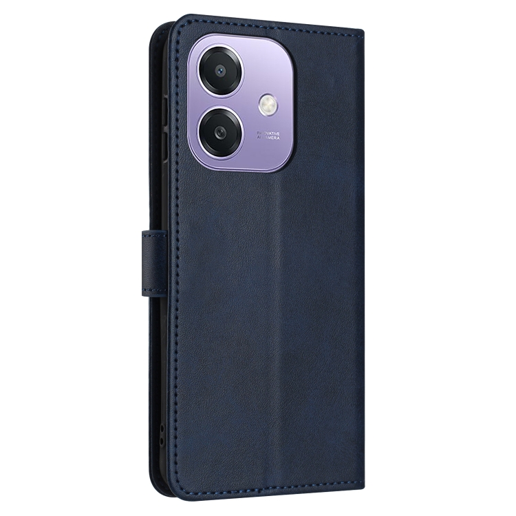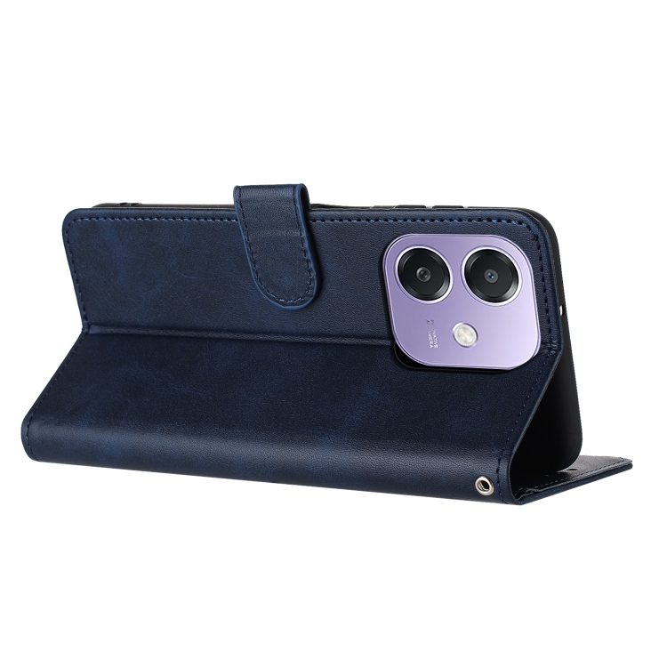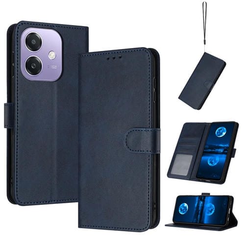 Funda de Piel con Tapa y Textura de Piel de Becerro Sólida para Oppo A3X (Azul Oscuro)