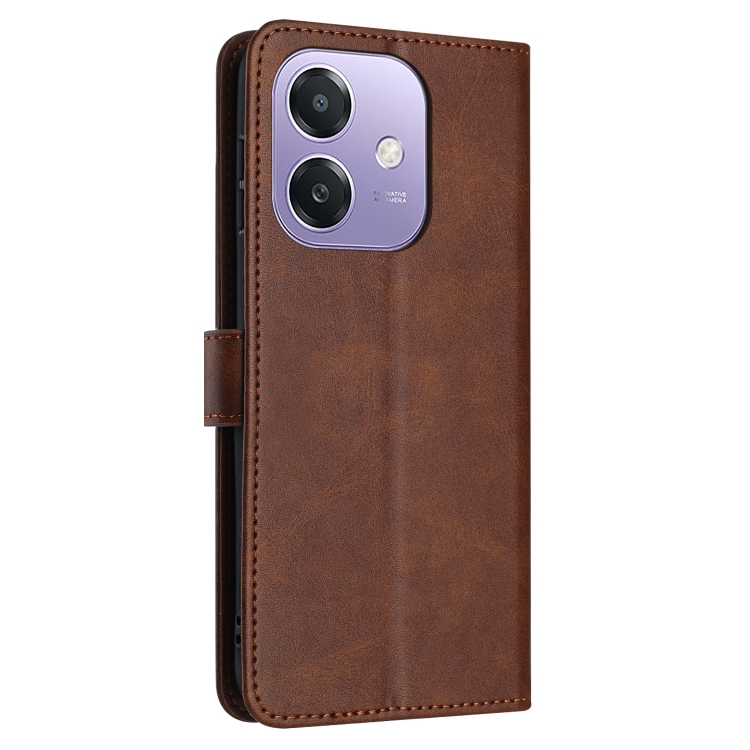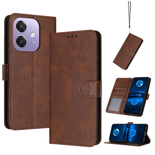 Funda de Piel con Tapa y Textura de Piel de Becerro Sólida para Oppo A3X (Marrón)