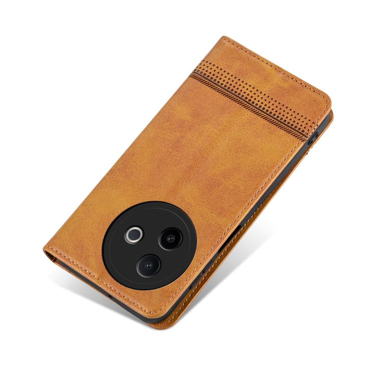 Funda de Piel con Textura de Becerro Magnética Azns para Vivo Y300I 5G / Y39 5G Global (Marrón Claro)