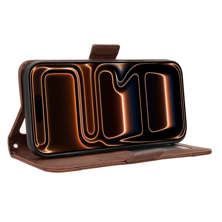 Funda de piel con textura de becerro para iPhone 17 Pro, con ranuras para tarjetas (marrón)