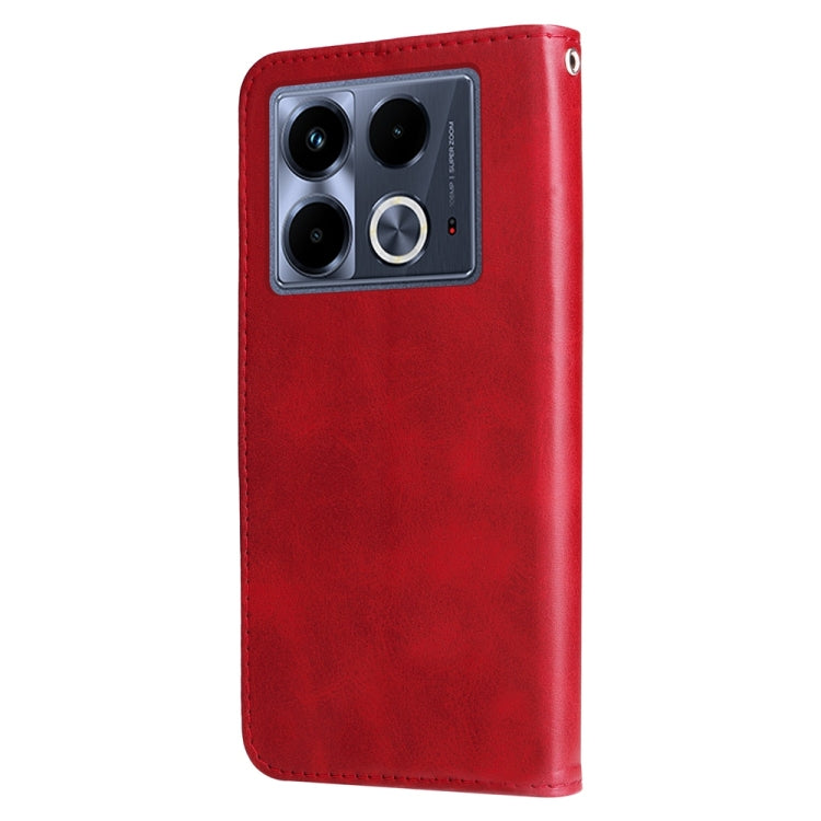 Funda de Piel Textura de Becerro con Cremallera para Infinix Note 40 4G (Rojo)
