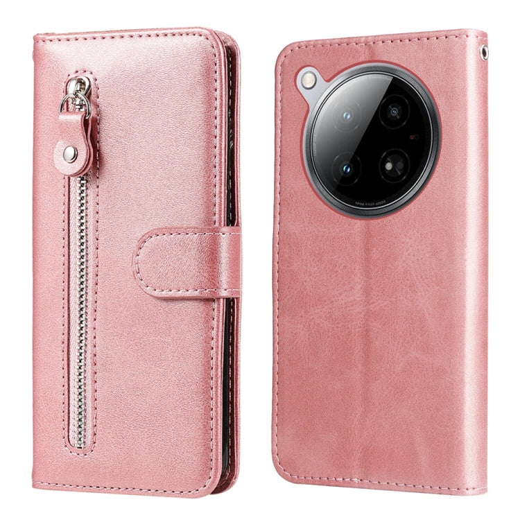 Funda de Piel con Textura de Becerro y Cremallera para Infinix Zero 40 4G/5G (Oro Rosa)