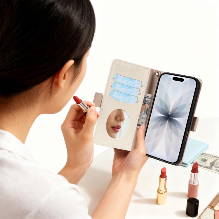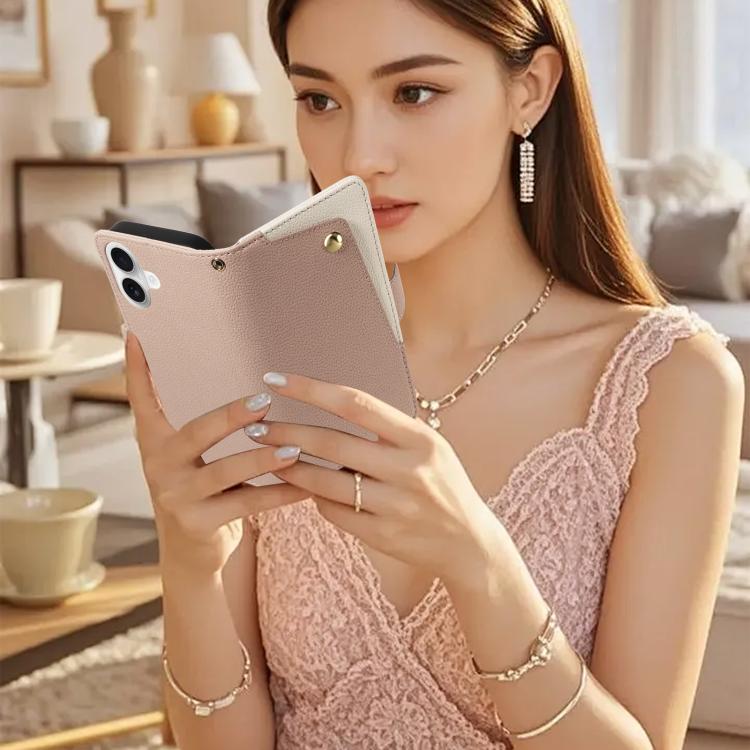 Funda de piel con textura de lichi y espejo para iPhone 17 (rosa)