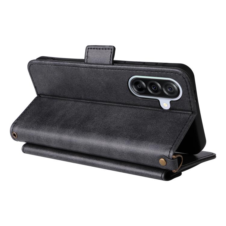 Funda de piel de vacuno cruzada con ranuras para múltiples tarjetas para Samsung Galaxy A36 5G (negra)