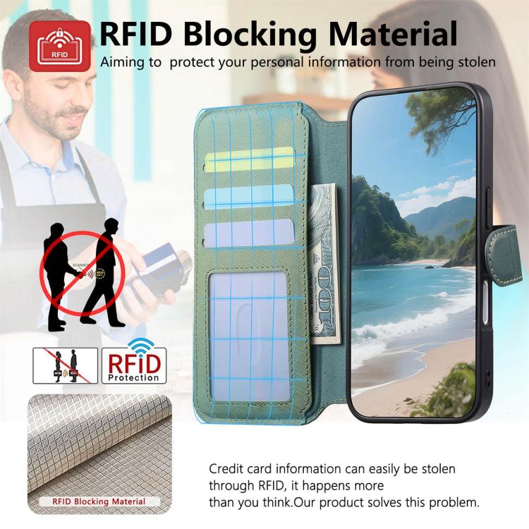 Funda de piel para iPhone 17 Pro, de tela de sarga, con MagSafe, RFID, antirrobo y cremallera (verde).