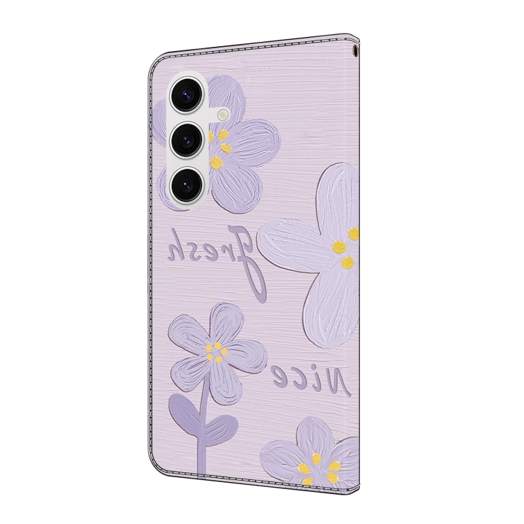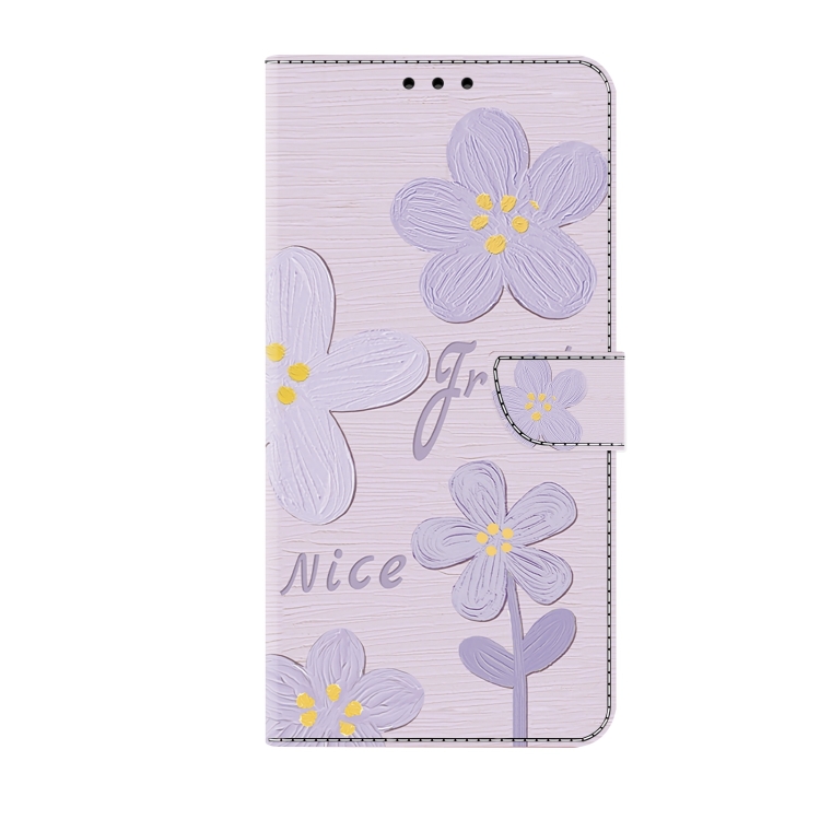 Funda de Piel Samsung Galaxy A25 5G Pintada a Mano con Pequeñas Flores (Lilas)