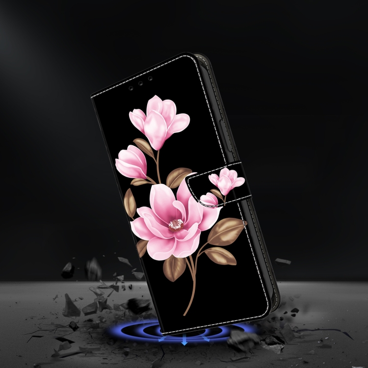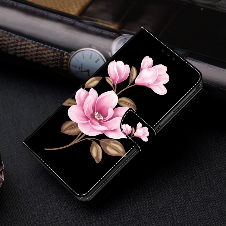Funda de Piel Samsung Galaxy A14 4G/5G Pintada Fresca Flores Negras