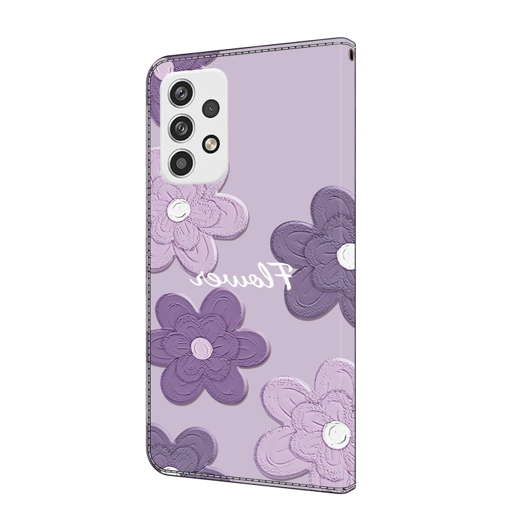 Funda de Piel Pintada Samsung Galaxy A52 4G/5G Flores de Color Morado Oscuro