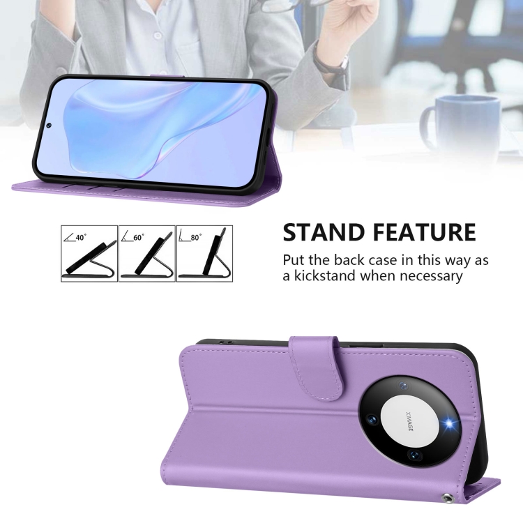 Funda de Piel Sintética con Cordón para Huawei Mate 60 Pro y 60 Pro+ (Morado Lavanda)