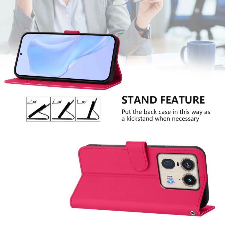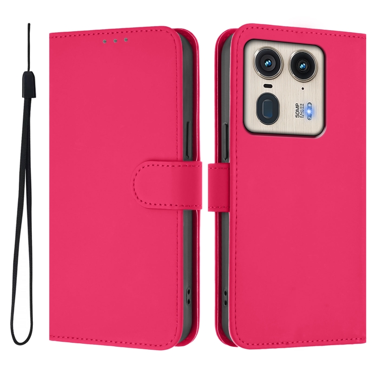Funda de Piel Sintética con Cordón para Motorola Edge 50 Ultra/X50 Ultra (Rosa y Rojo)