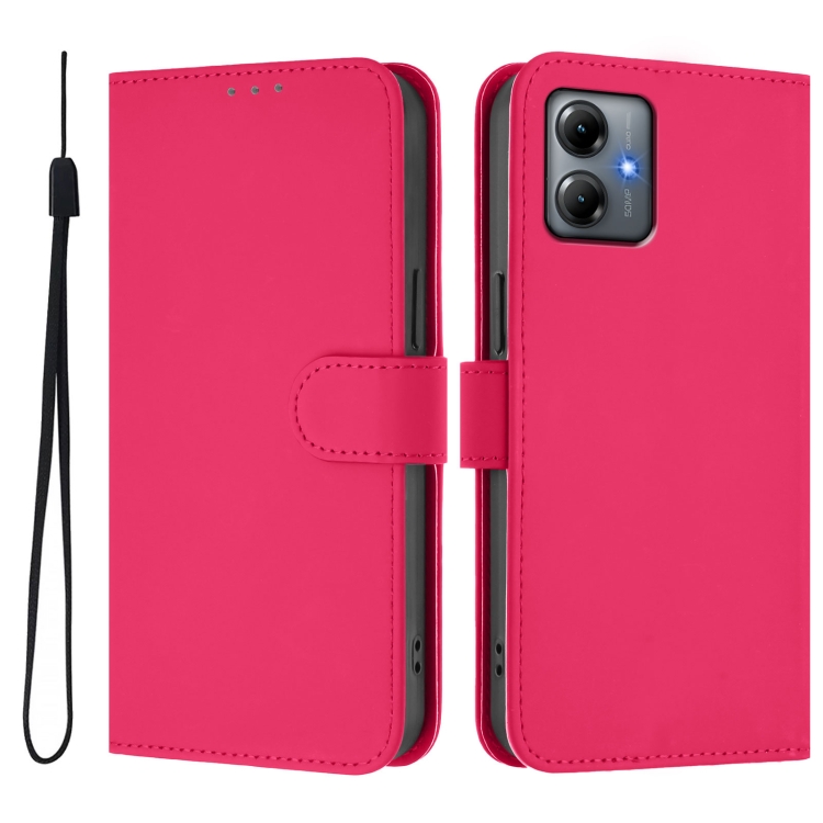 Funda de Piel Sintética con Cordón para Motorola Moto G14 4G (Rosa y Rojo)
