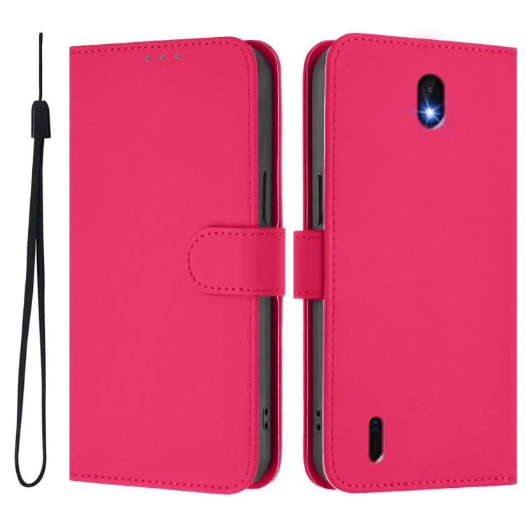 Funda de Piel Sintética con Cordón para Nokia C01 Plus/C1 2.ª Edición (Rosa y Rojo)