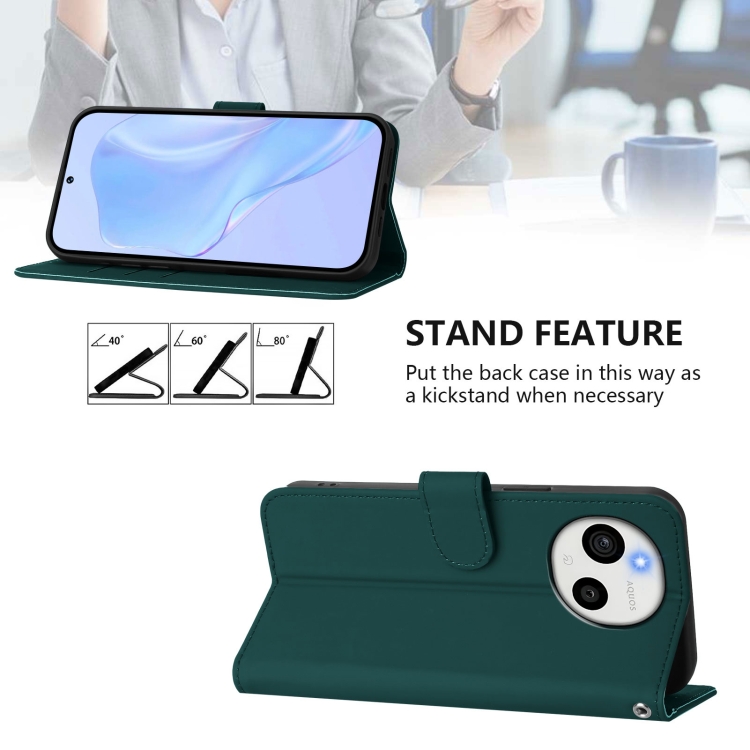 Funda de Piel Sintética con Cordón para Teléfono Sharp Aquos Sense9 (Verde Oscuro)