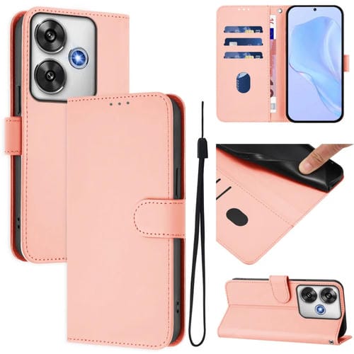 Funda de Piel Sintética con Cordón para Xiaomi Poco F6 5G (Rosa)