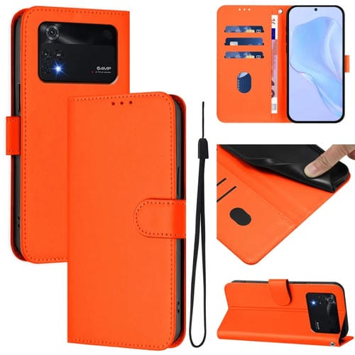 Funda de Piel Sintética con Cordón para Xiaomi Poco M4 Pro 4G (Naranja)
