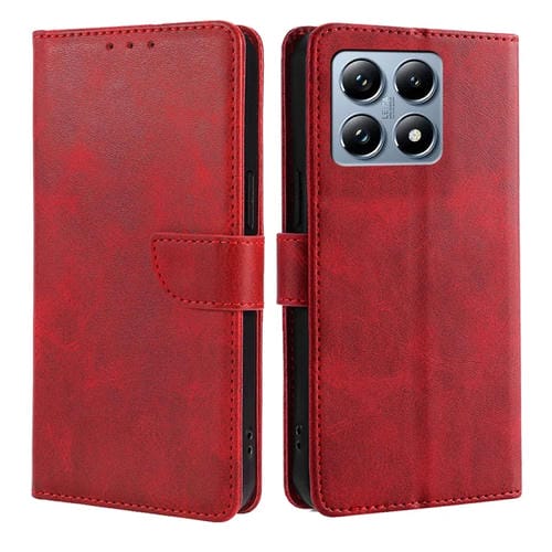 Funda de Piel Sintética con Tapa y Hebilla para Xiaomi Mi 14T Pro 5G (Rojo)