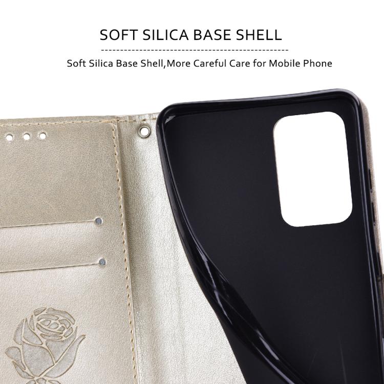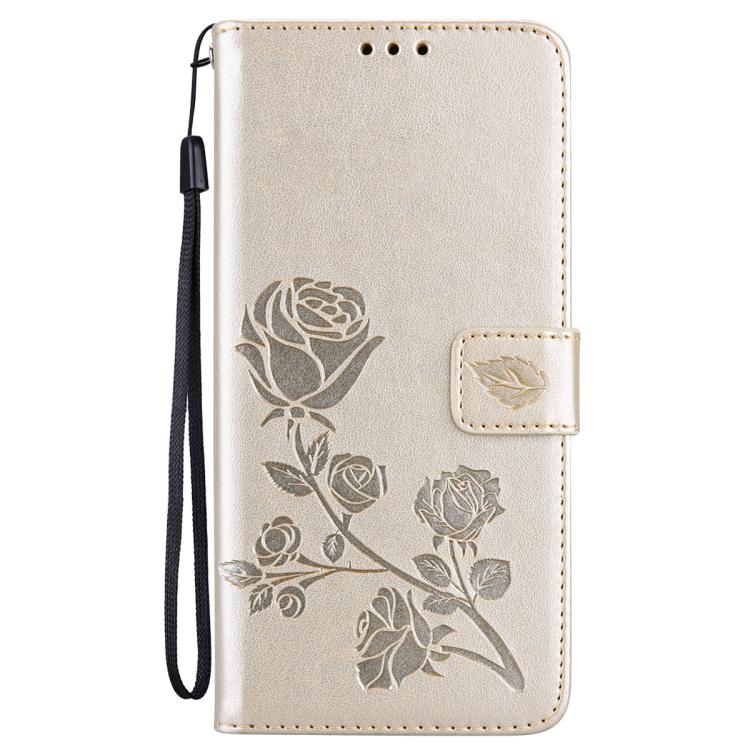 Funda de piel sintética con tapa y relieve rosa para iPhone 17 Pro Max (dorada)