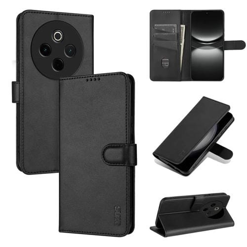 Funda de Piel con Tapa Azns con Textura de Piel de Becerro para Vivo Y300 Pro (Negra)