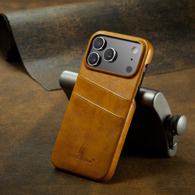 Funda de piel sintética con textura retro de cera de aceite Fierre Shann para iPhone 17 Pro (amarilla)