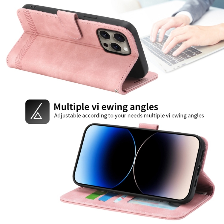 Funda de Piel Sintética y TPU Dierfeng Dream Line para iPhone 16 Pro Max (Rosa)
