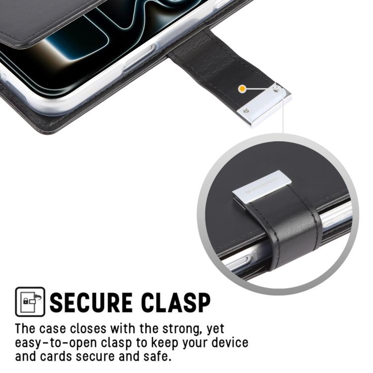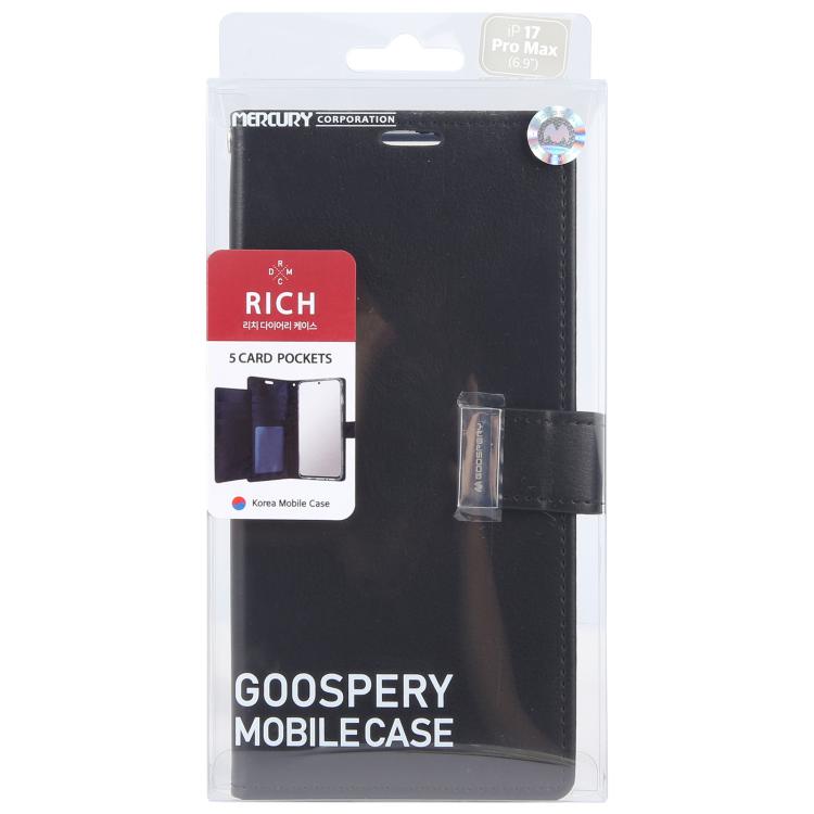 Funda de piel texturizada Crazy Horse GOOSPERY RICH DIARY para iPhone 17 Pro Max (negra)