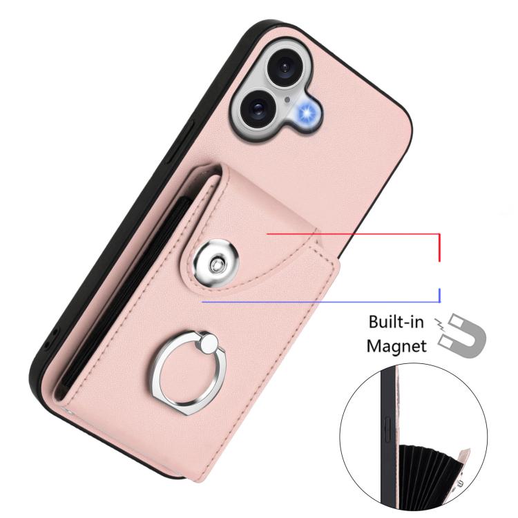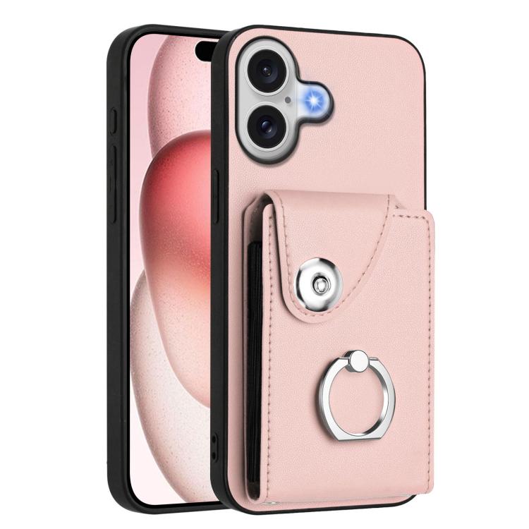 Funda de PU con cordón para iPhone 17, con tarjetero, anillo y soporte (rosa)