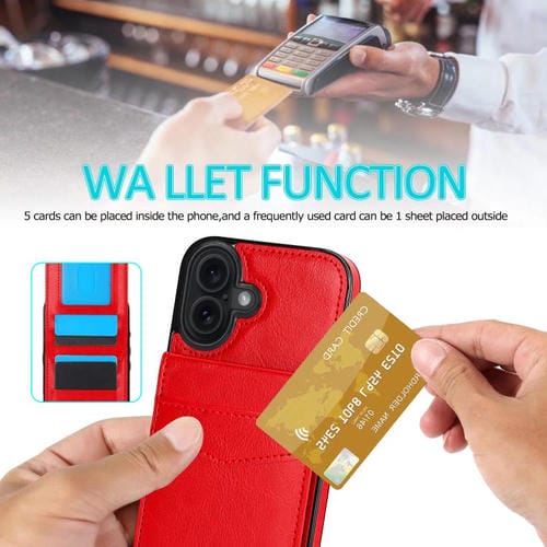 Funda de PU con ranuras para tarjetas para iPhone 17 (color sólido, rojo)