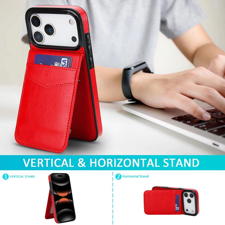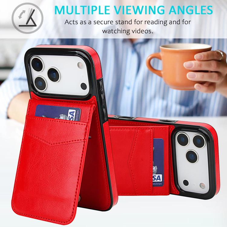 Funda de PU con ranuras para tarjetas para iPhone 17 Pro (color sólido, rojo)