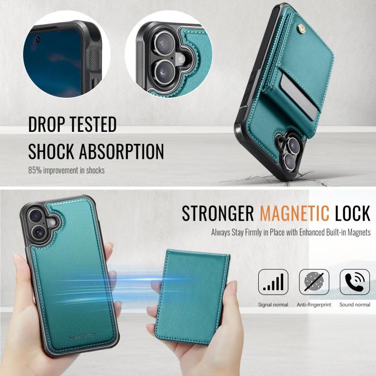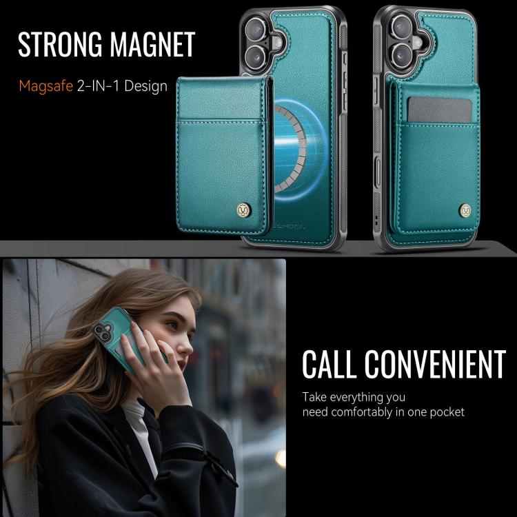 Funda de PU estilo británico para iPhone 17 JEEHOOD J06 con tarjetero RFID MagSafe (verde)